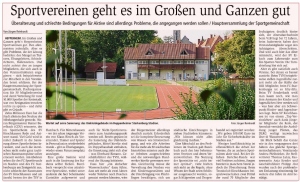 Ungeachtet dessen ist das Aufgabengebiet der Sportgemeinschaft sehr vielschichtig und umfangreich. Die Sportgemeinschaft ist in erster Linie Mittler zwischen den ihr angeschlossenen Vereinen und den politischen Mandatsträgern. Sie spricht aber auch ein gewichtiges Wort mit bei der Vergabe von Trainingszeiten und vertritt die Interessen des Sports und der Vereine immer dann, wenn dies erforderlich ist.